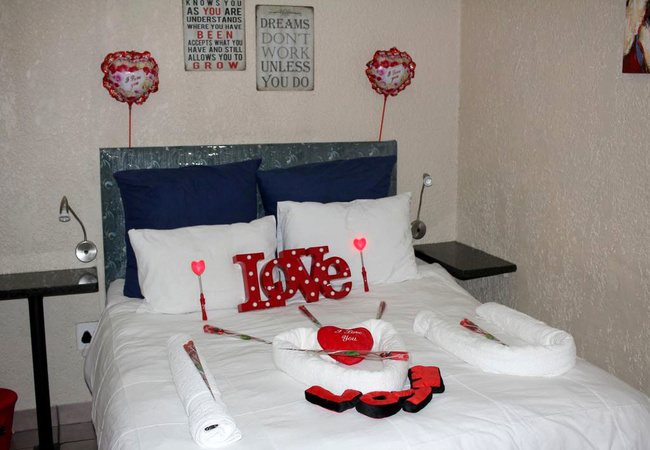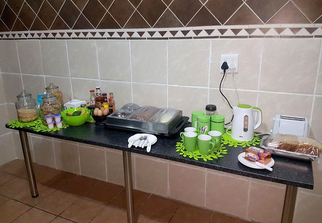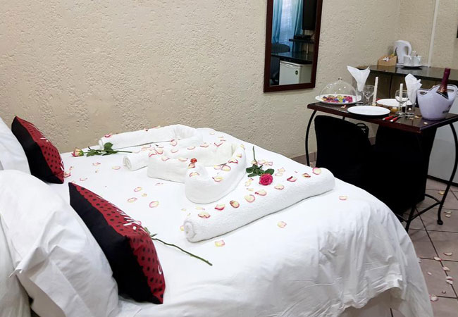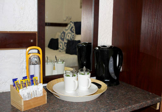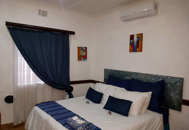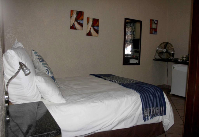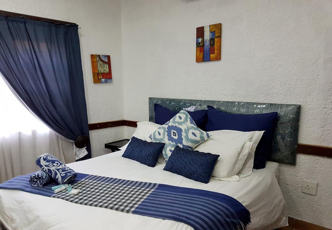 These rooms accommodate up to two guests each in a Queen-size bed. There is an en-suite bathroom with a shower, toilet and a basin. The room is furnished with a flat-screen TV with DStv and tea / coffee making facilities.