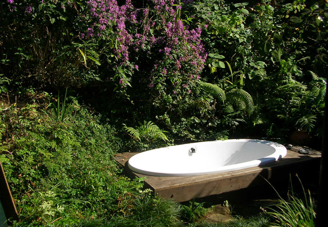Trogon Cottage can have either a King size bed or two single beds. It has a portable braai. The fireplace is designed to be used as a braai when it is cold and wet. Trogon Cottage has a splash pool. Trogon Cottage has an inside shower and double bath with a private double bath outside.