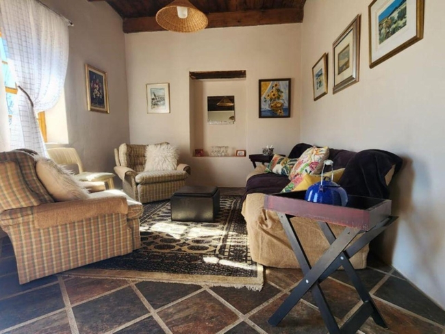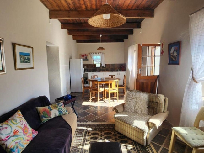 This cosy one-bedroom flatlet in the heart of the Klein Karoo is ideal for couples or solo travellers seeking comfort and simplicity. The flatlet features an en-suite bathroom with shower, a lounge area, and a well-equipped kitchenette with a microwave, bar fridge, two-plate stove, and coffee and tea facilities. Guests can enjoy the small private garden, complete with outdoor furniture and braai facilities, making it easy to relax and take in the quiet charm of the surroundings. Modern conveniences such as Wi-Fi, a safe, a desk, and regular cleaning service ensure a comfortable stay. The property is non-smoking and welcomes small dogs, adding to its homely appeal. With mountain views and peaceful outdoor spaces, this retreat offers an inviting balance of practicality and charm.