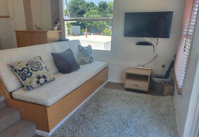 This sunny, spacious unit sleeps two adults and two children. There is one bedroom with a double bed and a sleeper couch in the lounge. There is an en-suite bathroom with a shower. The apartment has a comfy living area and a kitchen area with a microwave, fridge and tea / coffee making facilities.