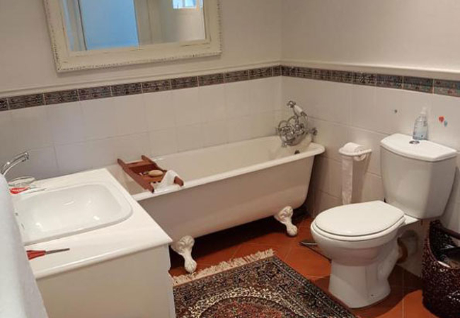 This lovely, spacious room sleeps two guests in a double bed and has an en-suite bathroom with a Victorian bath and a shower. The room is equipped with tea / coffee making facilities, a small bar fridge as well as complimentary rusks and muesli.