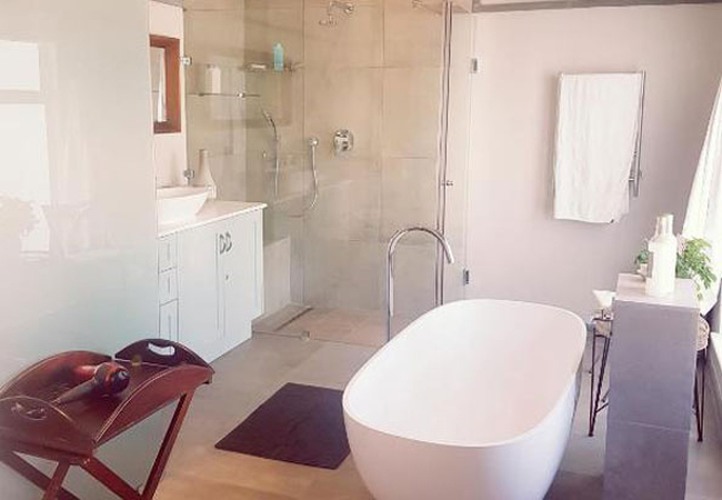 The Wild Rose Room is a well appointed, classic, spacious room furnished with a Queen-size bed. The en-suite bathroom is fitted with a deep freestanding bath, a walk-in shower, and a washbasin. The room is equipped with a TV with DStv. a bar fridge, tea- and coffee-making facilities, and Wi-Fi.