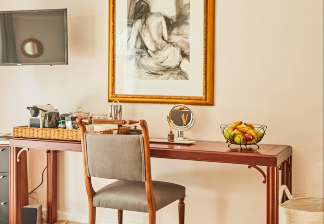 The Orchid Room is a beautifully appointed, classic, spacious room furnished with aQueen-size bed. The en-suite bathroom is fitted with a Victorian bath, a shower, and a washbasin. The room is equipped with a TV with DStv. a bar fridge, tea- and coffee-making facilities, and Wi-Fi.
