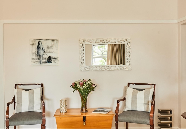Enjoy a home from home environment in our self contained apartment or our traditional guest room. Both units have a TV with DStv and free Wi-Fi. Each room has an assortment of local, healthy breakfast foods including muesli, yogurt, fresh fruit, rusks, tea and filter coffee.