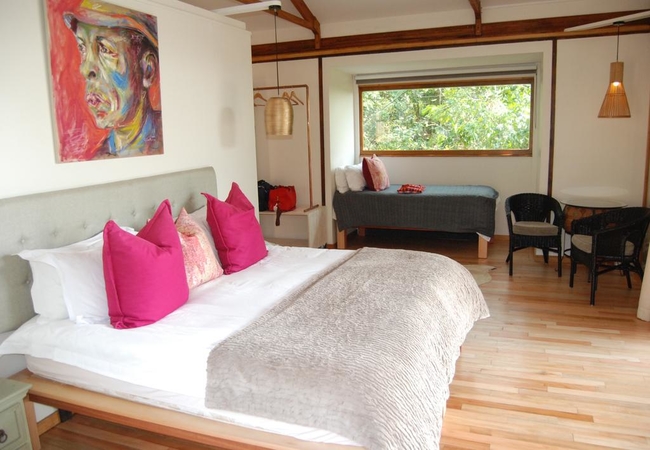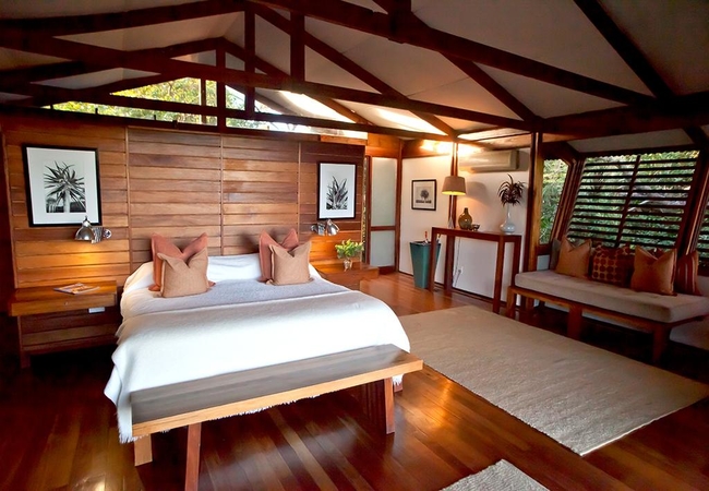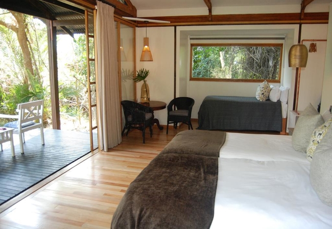 Twin Beds, Standard Room - Forest Setting, Telephone, Air conditioning, Heating, Fan, Private Decks, Separate Bathroom and Toilet, Outside Shower, Dressing Area, Mini-bar, Dressing Table, Tea / Coffee Tray, Insect Proof Screen Doors. All rooms have air conditioning, Fans, Mini-bar and coffee, USB charge points, hairdryer and safe. All rooms have an additional bath and shower outdoors except for the Honeymoon Suite.