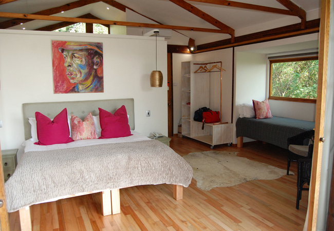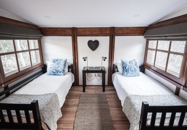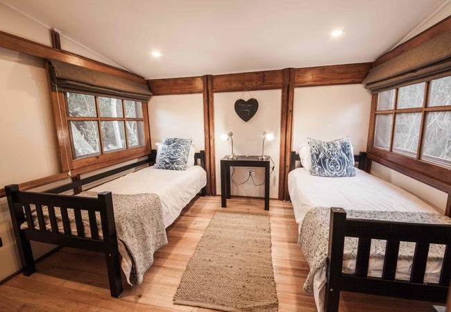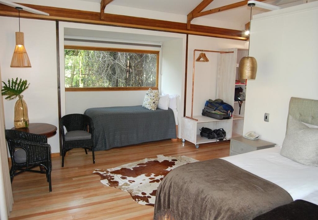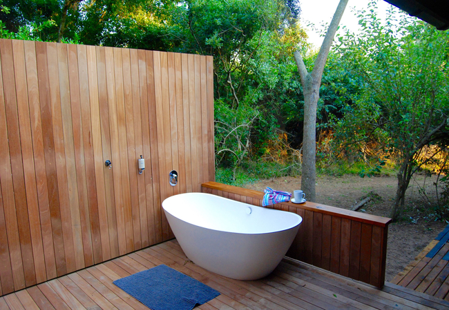 Twin Room with a sleeper couch for third person, preferably a child 8 years and younger. Forest Setting, Telephone, Air conditioning, Heating, Fan, Private Decks, Separate Bathroom and Toilet, Outside Shower, Dressing Area, Mini-bar, Dressing Table, Tea / Coffee. All rooms have air conditioning, Fans, Mini-bar and coffee, USB charge points, hairdryer and safe. All rooms have an additional bath and shower outdoors.