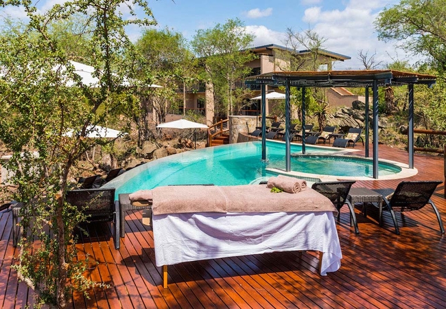 Makalali River Lodge is situated on the banks of the Makhutswi River. This 5 star lodge consists of three camps that have six luxury suites each.