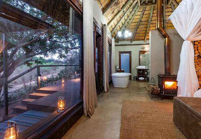 Each Thatched Suite has a King-size bed and a raised timber viewing deck (sala) to offer spectacular views over the Makhutswi River from which to observe the bird life and game. You can also enjoy the convenience of the following features: a plunge pool, boma, fireplace, an enclosed dining and lounge area, an en-suite bathroom with an indoor- and outdoor shower and a bath, toilet and basin.