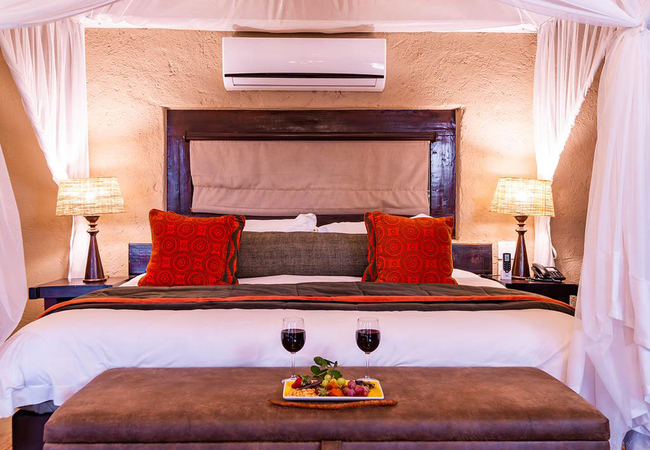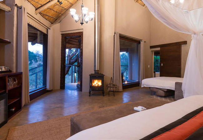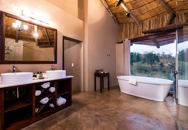 The River lodge has thatched suites and family suites with a raised timber viewing deck. All suites have an en-suite bathroom which includes an indoor and outdoor shower, bath and fireplace.