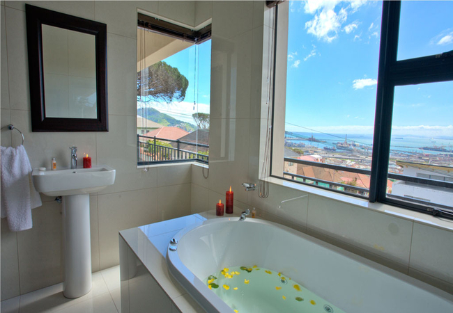Mandelas Gold is a spacious apartment in Walmer Estate sleeping six guests. The first bedroom is furnished with a Queen-size bed and the second bedroom is furnished with a twin beds. There is also a sleeper couch in the living area for two children. There are two en-suite bathrooms, fitted with a shower, toilet and basin, one of them also has a spa bath. There is a separate guest toilet. There is a comfortable living area with air conditioning, a TV with DStv / satellite channels, Wi-Fi and a dining table. The kitchen is well equipped for your self catering stay and boasts a dishwasher and washing machine for convenience. The apartment has splendid views of Table Mountain and Table Bay Harbour from the balcony. There is remote control secure parking available.