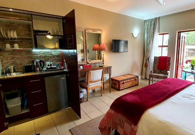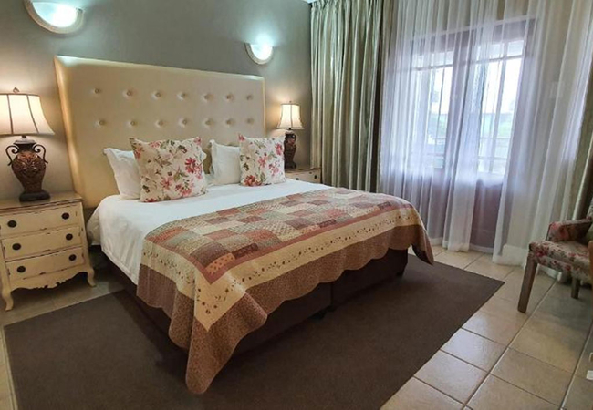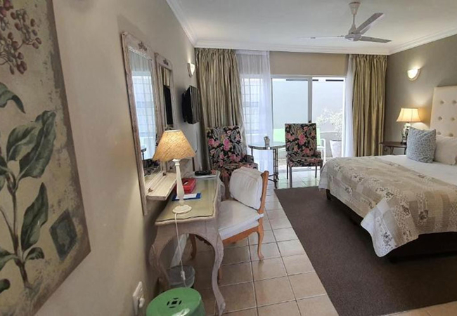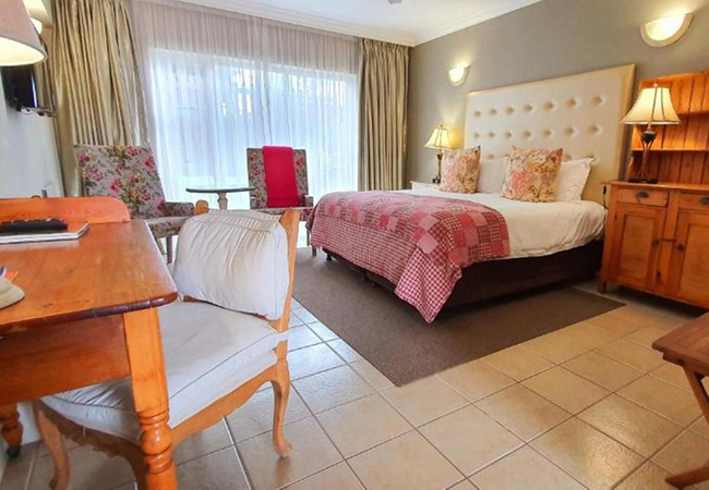 The Classic Double rooms are spacious and equipped with a flat-screen TV with DSTV guesthouse bouquet, mini bar fridge, tea-and-coffee -making facilities and vanity desk. It offers a full en-suite bathroom and sliding doors leading onto small patio or balcony with seating. This room can accommodate 2 adults and includes breakfast.