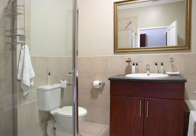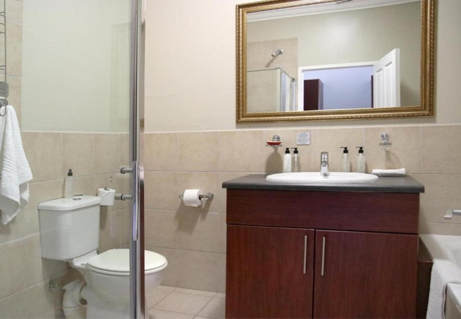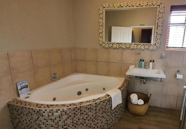 Located in the front of the hotel, the spacious Executive Rooms are equipped with a flat-screen TV with DStv guesthouse bouquet, a small seating area, a private balcony, fan and wall heater, and a kitchenette cupboard with microwave, fridge, crockery and tea and coffee-making stations. The full en-suite bathroom boasts a shower and a spa bath. This room can accommodate 2 adults and includes breakfast.
