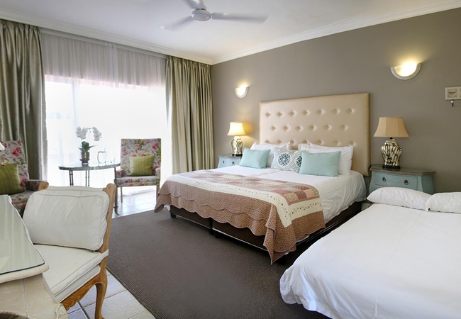 The Classic Family Rooms offers a full en-suite bathroom and a sleeper couch for children. Only 2 children under 12 years per room, the combined age of children may not exceed 16 years. This room can accommodate 2 adults and 2 children under 12 years. These rooms are equipped with a flat-screen TV with DSTV guesthouse bouquet, mini bar fridge, tea-and-coffee -making facilities and vanity desk. It offers a full en-suite bathroom and sliding doors leading onto small patio or balcony with seating