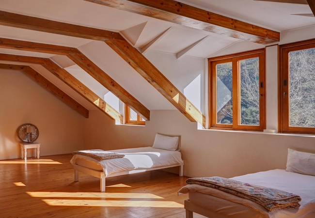 There are four rooms, two are furnished with double beds, two are furnished with twin beds and the loft room is furnished with four single beds. One bedroom has an en-suite bathroom fitted with a shower, toilet and basin and there is another shared bathroom fitted with a shower, toilet and basin.