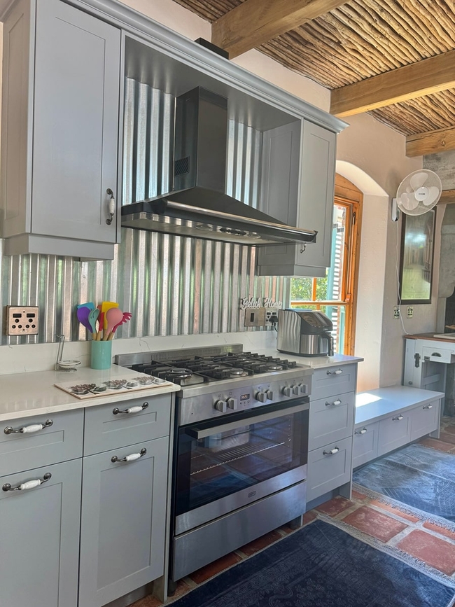 The kitchen is fully equipped for easy self catering. It includes a Nespresso machine, as well as an airfryer, washing machine, tumble dryer, two dishwashers, an electric oven, a microwave, kettle, toaster, and a five plate gas stove with oven. Nothing has been overlooked, which means you can cook properly.