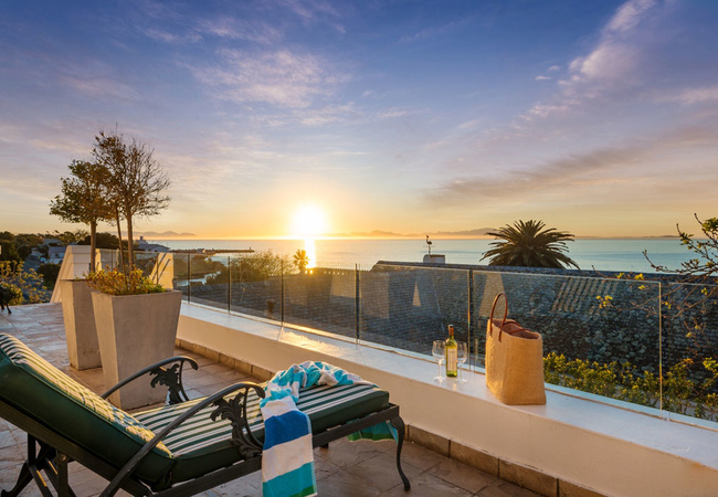 Lovely spacious family suite with sea view. One King-size bed and two bunk beds. Self catering. All rooms have modern conveniences i.e. safes, computer links, hairdryers, mini-bars, TV with M-Net and satellite TV, air-conditioning and some with fireplaces. Extra luxuries include toiletries, pure cotton linen, gowns, pool towels and laundry services. There is secure off-street parking for guests.