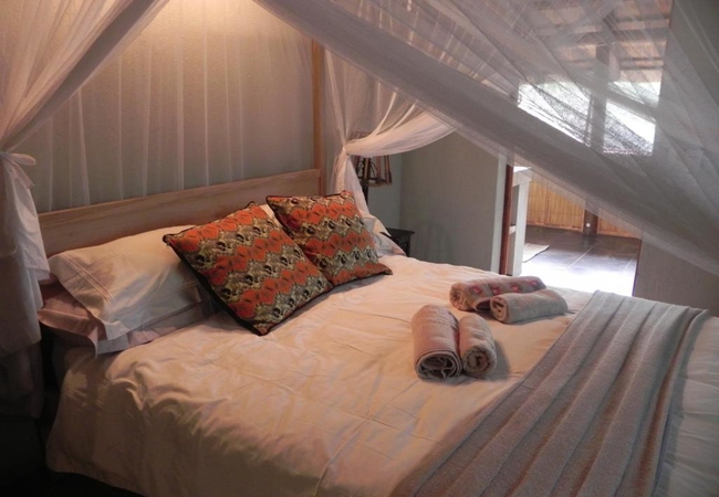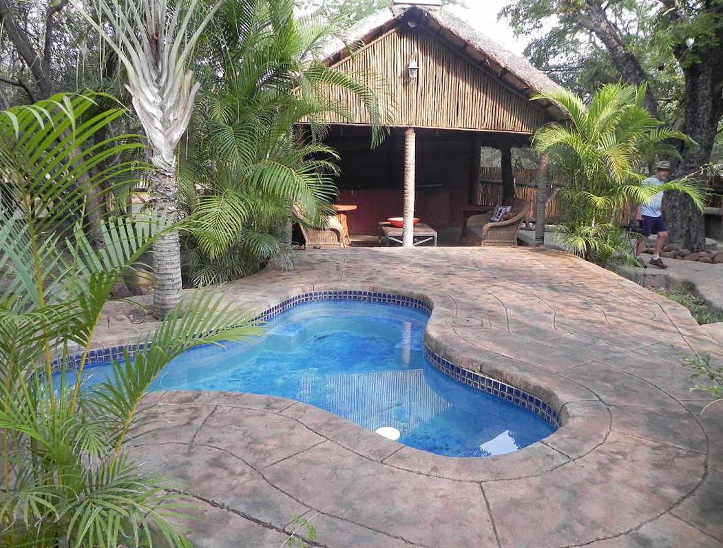 There is also a lounge area with TV and dining area as well as a lapa with a bar / swimming pool and braai area overlooking the bush veld from where you can view the animals in close proximity as well as an abundance of bird life of more than 200 species.