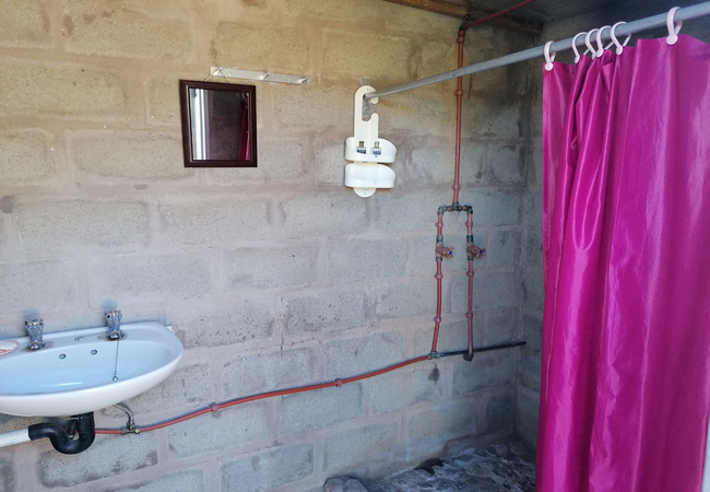 There is no electricity on the campsite. The ablution facility consists of a toilet, basin and shower. There is a dishwashing double sink and working surface in the “kitchen” area. The water supply is from a fresh water spring in the mountain. Hot water is supplied by a gas geyser. Light source is paraffin lamps and candles.