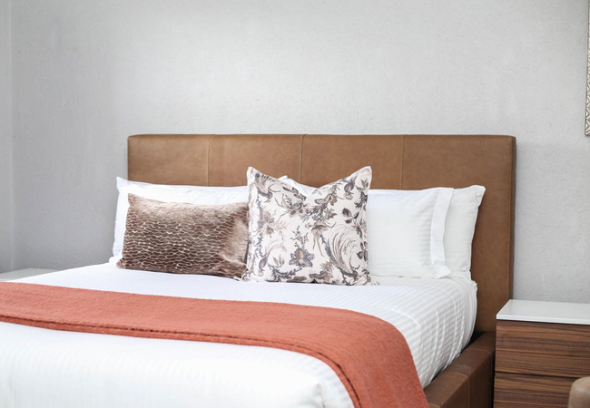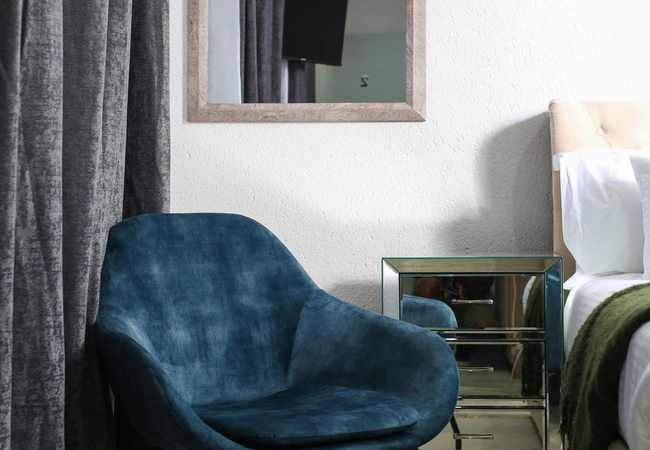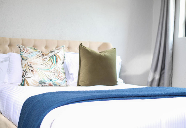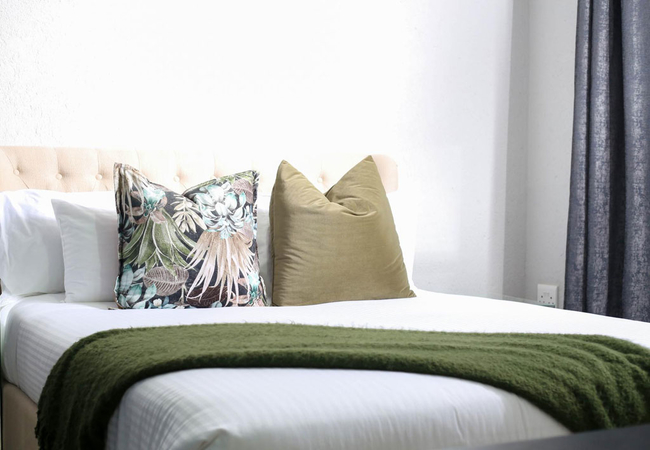 The Deluxe Room is furnished with a King-size bed and an en-suite bathroom with a free standing bath, toilet and basin. The rooms include free Wi-Fi, air-conditioning, toiletries, fan, desk and DStv. Our guests have access to the hotel's restaurant, swimming area and spa.