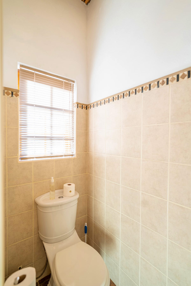 The house has three bedrooms. The first room has a King-size bed and the other two rooms have two single beds each. There is a bathroom with a shower and a bath. Bath towels and linen are provided. There is a fully equipped kitchen and a dining area where you can enjoy your meals. The lounge is comfortable and there is an enclosed braai room with patio furniture. Outside there is a patio, an outdoor shower and a pool.