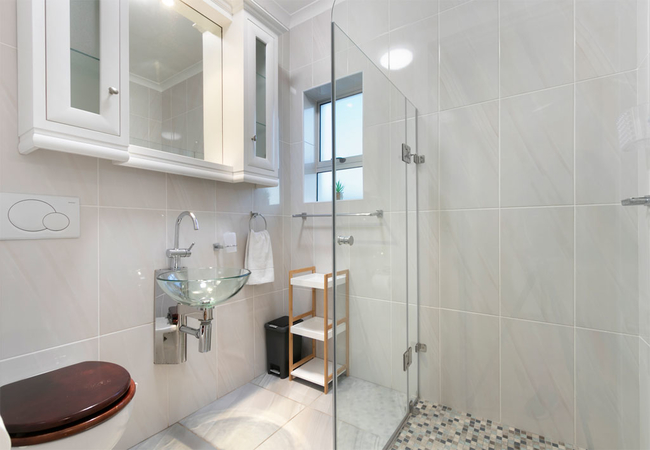 Melkbos Aan See is a self catering holiday home designed with modern finishes and tranquil beach colours. There are three bedrooms. The main bedroom has a Queen-size bed and en-suite bathroom with a shower. The second and third bedrooms each have a double bed and share a bathroom with a shower.