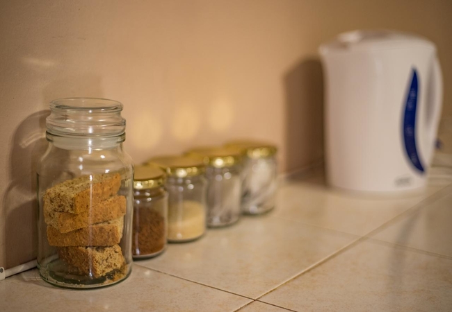 The room has tea and coffee making facilities, a microwave and basic crockery and cutlery.