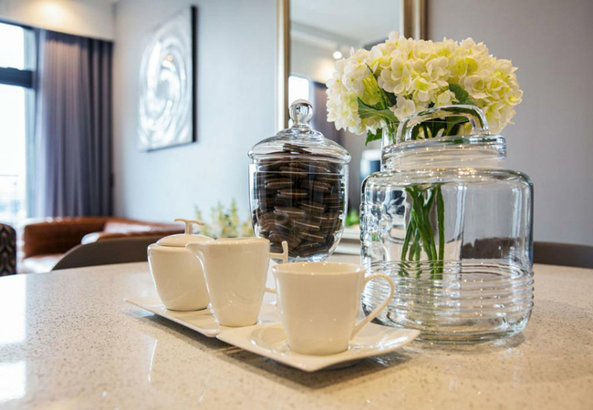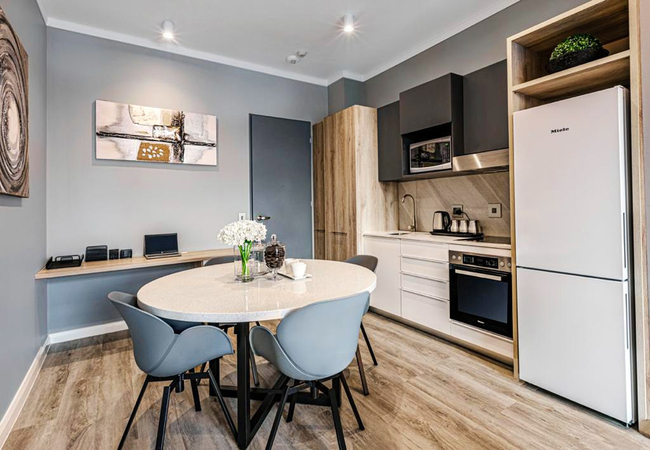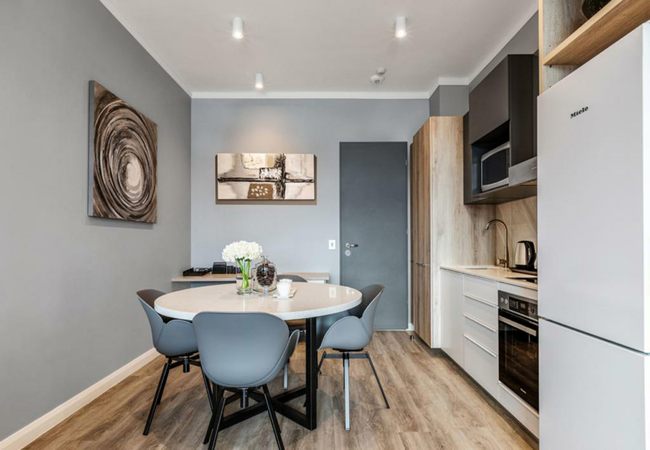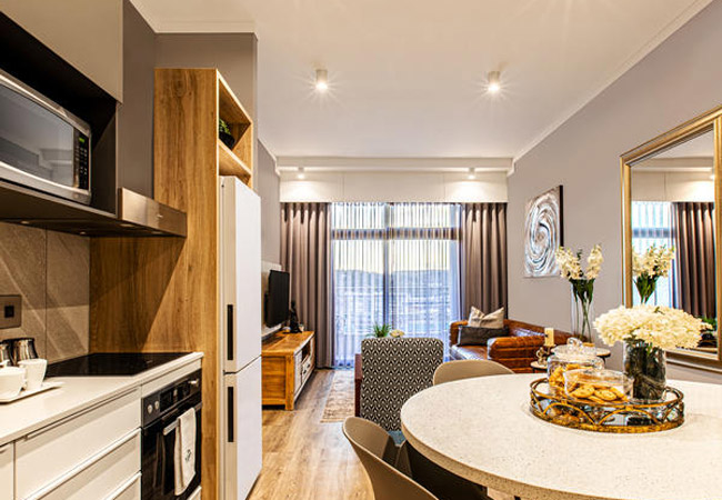 Menlyn Maine 1419 is an air conditioned apartment that can accommodate two guests and has one bedroom, one bathroom and an open-plan kitchen and living area. The bedroom has a double bed, and an en-suite bathroom fitted with a shower, toilet and washbasin. The kitchen is fully equipped and contains a stove, oven, fridge-freezer, microwave, cutlery and crockery. The dining area has seating for four people and an area suitable for use as a work station. The lounge has a comfy lounge suite and a flat-screen TV with selected DStv / satellite channels. Free Wi-Fi access is also provided. The building has a swimming pool and secure parking.