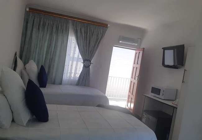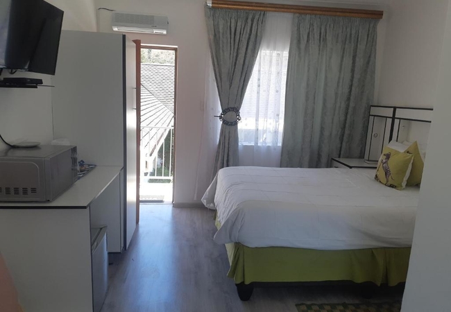 The Double Room is furnished with a double bed. The en-suite bathroom is equipped with a shower, toilet and basin. Each room has high quality comfortable beds, en-suite bathrooms with a shower, air-conditioning, television with DStv, hairdryer, digital alarm clock, shaver points, tea and coffee facilities and wireless internet connectivity.