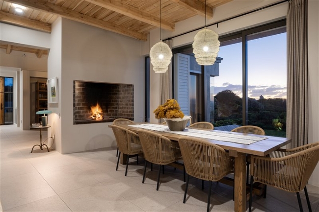 Depending on their location, the rooms offer tranquil views of the garden, the inner courtyard, or sweeping vistas over Walker Bay. Guests are welcome to unwind in the warm and inviting lounge, complete with a fireplace and flat-screen television, or gather around the dining table in a stylish dining area overlooking the ocean.