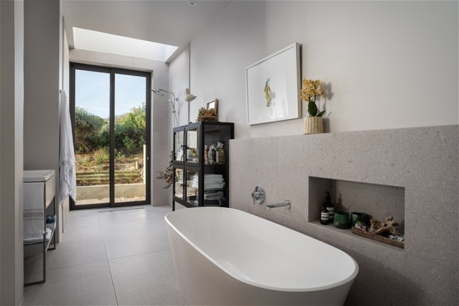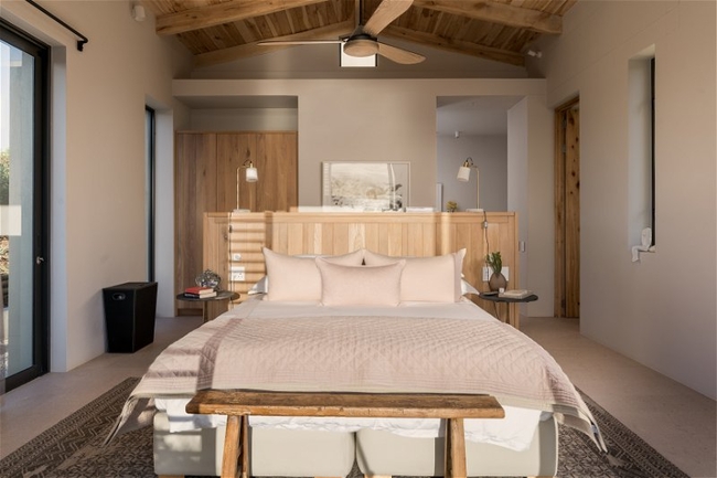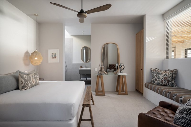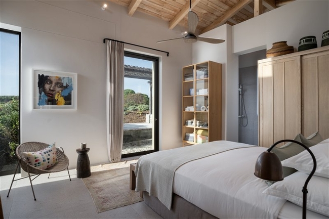 The villa comprises four elegantly styled rooms, each with its own en-suite bathroom featuring either a walk-in shower or a combination of shower and bath. Furnished with king-size beds, quality linen, and soft duvets, each room also offers a private patio, a separate entrance, and thoughtful touches such as hairdryers, ceiling fans, and comfortable seating areas.