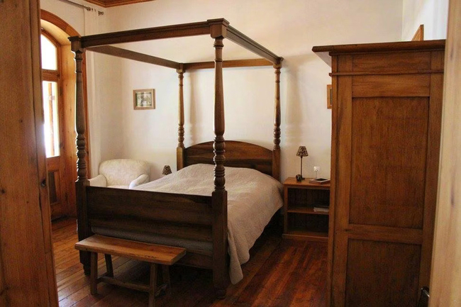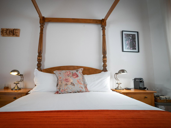 The smart Grenache Room is a large 31m en-suite bedroom that leads out to the sparkling swimming pool and the terrace. The patio overlooks the green olive groves and provides an impressive view of the Kasteelberg Mountain that hugs the town of Riebeek West. The room has a four-poster canopy queen-size bed with crisp cotton linen, an antique bath and large shower. A TV, fridge, safe, hairdryer and espresso machine makes this room a popular choice for sun lovers.