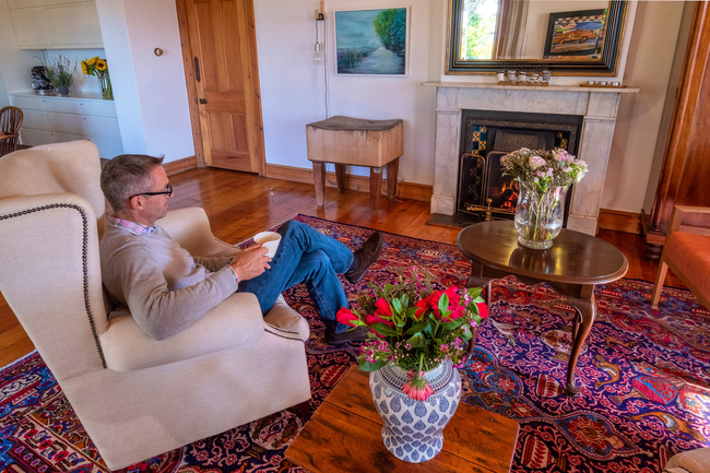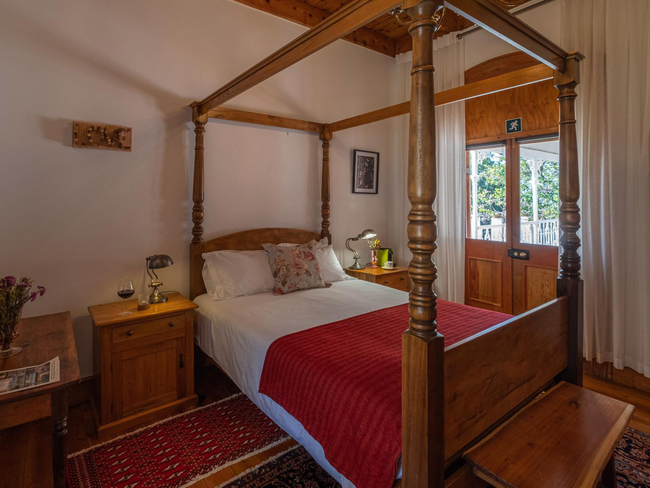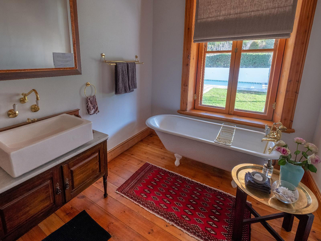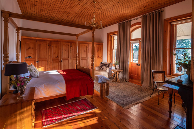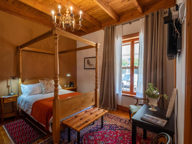 The elegant Chenin Room is a spacious 48m bedroom with its own private patio that leads on to the manicured gardens of the Manor with views towards the majestical Saronsberg mountains. The Groot Winterhoek mountains is snowcapped in winter and will greet you as you peep through the wooden sash windows. The room has a four-poster canopy queen-size bed dressed with fresh white cotton linen, a TV, bar fridge, safe, hairdryer and an espresso machine for that early morning cappuccino while seeing the sun rise from your own patio. The over-sized bathroom with its notable free standing copper bathtub makes the Chenin Room everyone’s darling.
