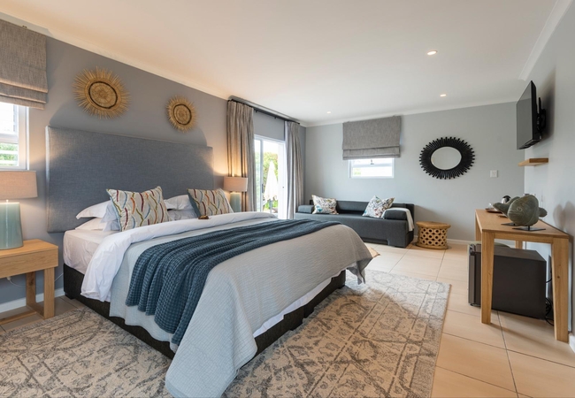 Furnished with an extra-length King-size bed (please request twin beds after confirming your booking, if required) and an extra sleeper couch. There is an en-suite bathroom fitted with a shower, toilet and hand basin. There are also coffee and tea making facilities and a TV with Netflix.