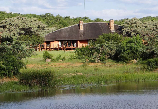 Elephant, Waterbuck, blue Wildebeest, Warthog and Impala are common residents close to the lodge. Zebra, Eland, white Rhino, Lion and Cheetah are also frequent sightings on our adjacent grass plains and acacia woodland, where we also receive regular visits from giraffe or that elusive leopard! All the wildlife you can expect in South Africa is here.