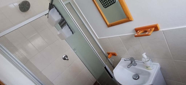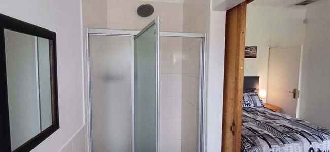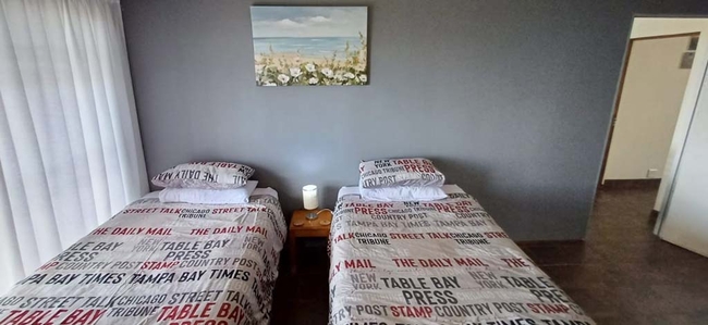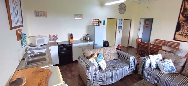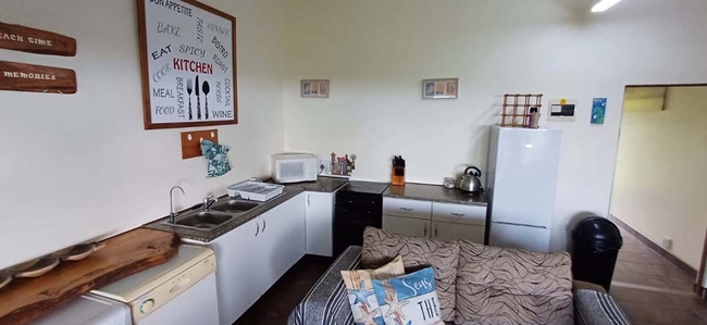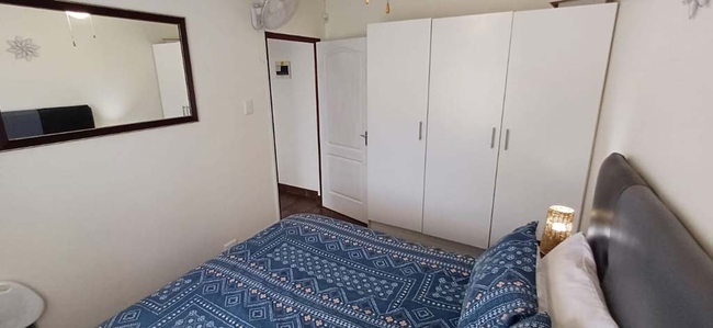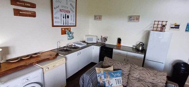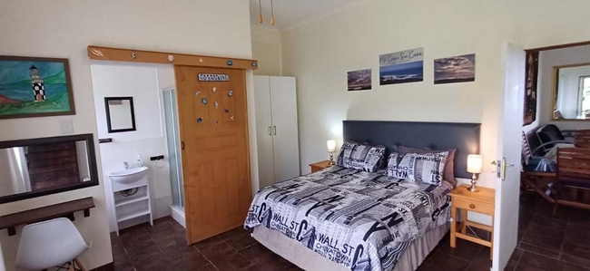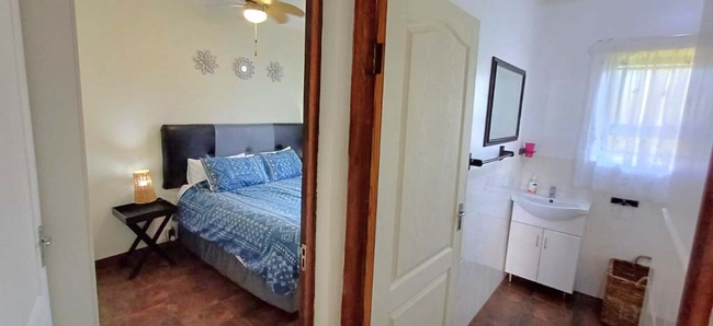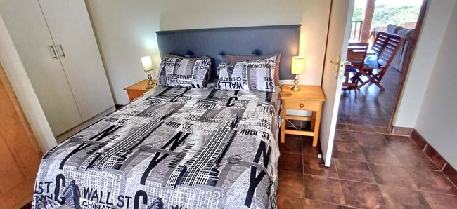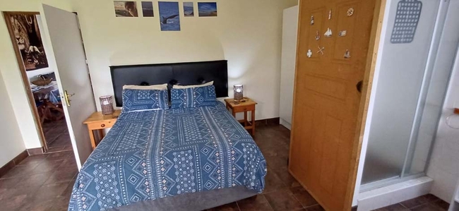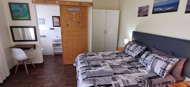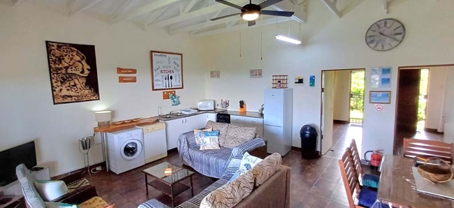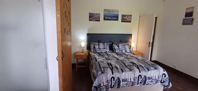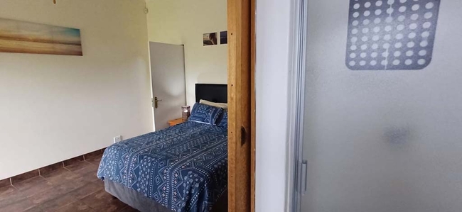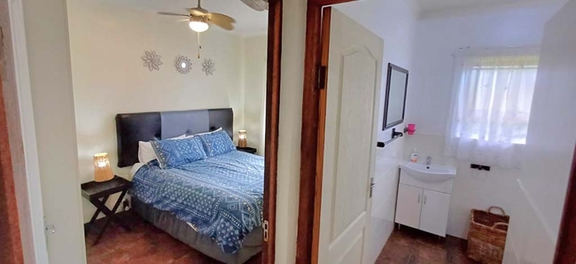 Su Casa 2 is open-plan and has two bedrooms with ceiling fans. The first bedroom bedroom is furnished with a Queen-size bed. The second room has two single beds. The bathroom is fitted with a shower, toilet and basin. Bedding and bath towels are provided, please bring your own beach towels. The kitchen has a fridge, gas stove, dishwasher, washing machine, microwave, kettle, crockery and cutlery. The dining room has a dining table and the lounge has a comfortable lounge suite and a sleeper couch. Outside is a veranda with a Weber braai. The sea is within view from the dining room and veranda.