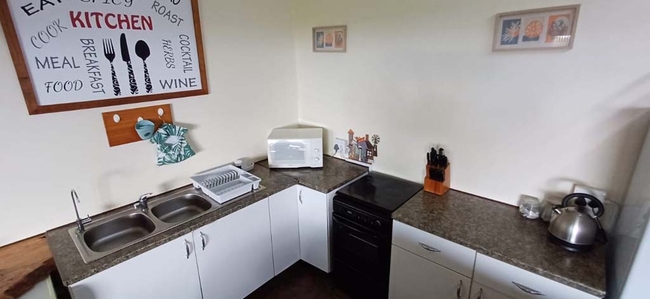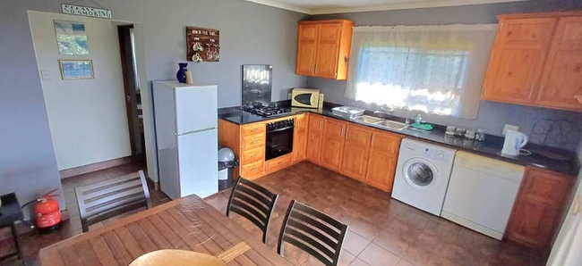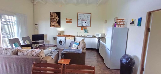 Mi Casa Su Casa cottages are open-plan with a fully equipped kitchen and dining area. The kitchen has a fridge, gas stove, dishwasher, washing machine, microwave, kettle, crockery and cutlery. The dining room has a dining table and the lounge has a comfortable lounge suite. Outside is a veranda with a Weber braai. The sea is within view from the dining room and veranda.