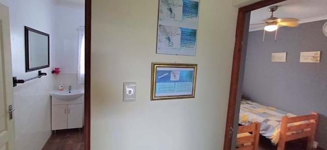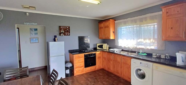 Su Casa 1 is open-plan and has three bedrooms with ceiling fans. The first bedroom two bedrooms are furnished with a Queen-size bed and have an en-suite bathroom. The third room has two three-quarter beds and an en-suite bathroom. All the bathrooms are fitted with a shower, toilet and basin. Bedding and bath towels are provided, please bring your own beach towels. The kitchen has a fridge, gas stove, dishwasher, washing machine, microwave, kettle, crockery and cutlery. The dining room has a dining table and the lounge has a comfortable lounge suite and a sleeper couch. Outside is a veranda with a Weber braai. The sea is within view from the dining room and veranda.