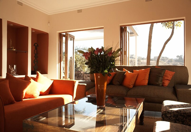 The guest house lounge area has a fabulous view and is a great place to relax. There is also an additional TV viewing lounge. Outside on the wooden deck you can stretch out on a sun lounger and read a book, alternatively you may enjoy sitting at the sparkling swimming pool under a large umbrella or in a quiet spot in the garden.
