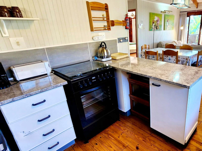 Milkwood Lodge 5 has been elegantly decorated and features two bedrooms. The main bedroom is furnished with a king-sized bed and includes an en suite bathroom equipped with a shower, toilet, and basin. The second bedroom contains a double bed and a single bunk bed, while the second bathroom provides a bath, basin, and toilet. The lounge comfortably seats four to six guests and features a flat-screen television. To watch DSTV, guests must bring their own decoder, smart card, and cables, as only HD decoders are compatible. An air conditioner in the lounge ensures the entire cottage remains cool during warmer months. Adjacent to the lounge is a dining area with seating for six, leading onto a spacious patio with magnificent sea views. The outdoor space includes comfortable furniture and a Weber kettle braai, perfect for al fresco dining. The kitchen is fully equipped for self-catering and contains a gas stove, refrigerator, and microwave. Guests have access to a large communal swimming pool and a shared laundry area. The property provides secure parking for one vehicle, with additional visitor parking located behind enclosed fencing. A beach gate offers direct access to the shore via a short walkway. All bed linen is supplied; guests are requested to bring their own bath and beach towels. To enjoy DSTV, it is necessary to bring a personal decoder, smart card, and cables, as only HD decoders are supported.