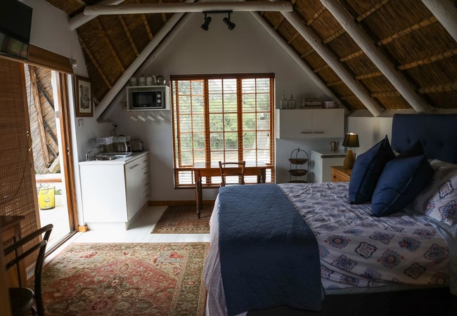 Milkwood Cottage is a downstairs cottage with a separate entrance, and comprises a Queen-size bed plus a loft area with two three quarter beds, a bathroom with a shower, and a small kitchenette with a fridge, a microwave and a breakfast bar. This cottage has access to an outdoor braai area. The cottage is equipped with full DStv and free Wi-Fi.