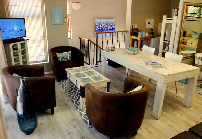 The comfortable lounge area has a flat-screen TV with DStv viewing and the dining area has a large table to enjoy meals and provides ample workspace for the executive.