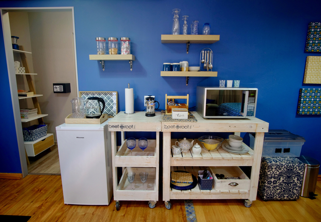 The equipped kitchenette is fitted with a microwave, kettle, small fridge, coffee, tea, rusks and biscuits. Free Wi-Fi Internet access is available in each studio and secure undercover parking behind a motorized gate. A patio and designated smoking areas provide a relaxing atmosphere.