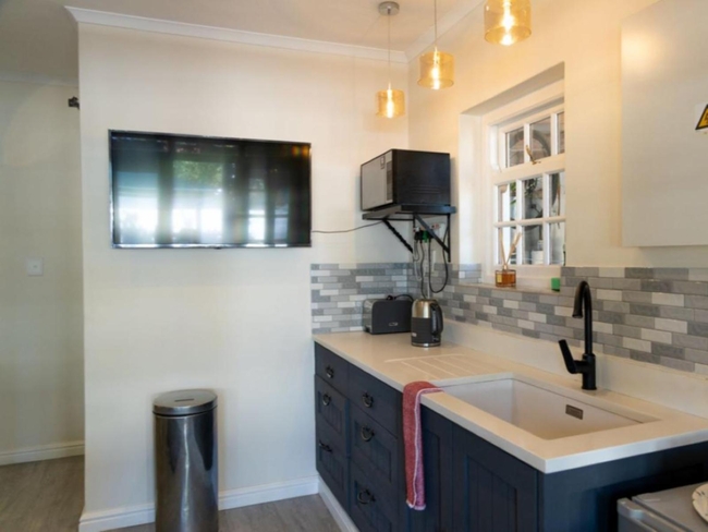 This modern space features an open-plan design, seamlessly combining the bedroom and living area with an en-suite bathroom for added privacy and convenience. Guests may enjoy access to the swimming pool, subject to the availability of the Pool House or with the approval of its guests. The garden and barbecue facilities are also available for your use, offering a relaxing outdoor experience. The unit includes complimentary Wi-Fi, a television with DSTV/Satellite channels, air conditioning, and a comfortable sitting area. It is a non-smoking environment, with a regular cleaning service provided to ensure a comfortable stay. The bathroom is equipped with a shower, while the kitchenette offers coffee and tea facilities, a refrigerator, and a microwave, providing all the essentials for a convenient self-catering experience.
