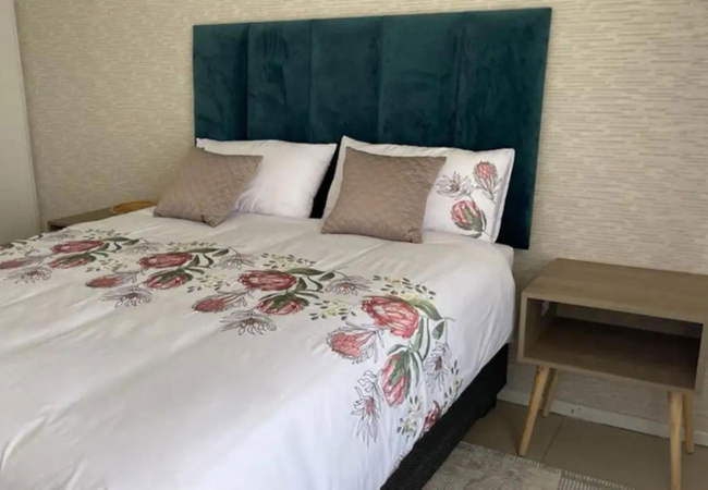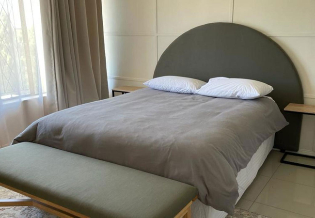 Modern Executive Stay has two bedrooms furnished with double beds. The bathroom is fitted with a shower, bath, toilet and basin. The kitchen is fully equipped for self-catering including a dishwasher and washing machine. The comfortable lounge has a smart TV and Wi-Fi is provided. Secure garage and visitor parking bays are available on site. Guests have access to the communal garden and braai facilities.