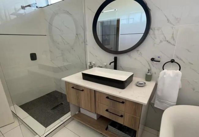 Modern Executive Stay Holiday Apartment in Upington has two bedrooms furnished with double beds. The bathroom is fitted with a shower, bath, toilet and basin.