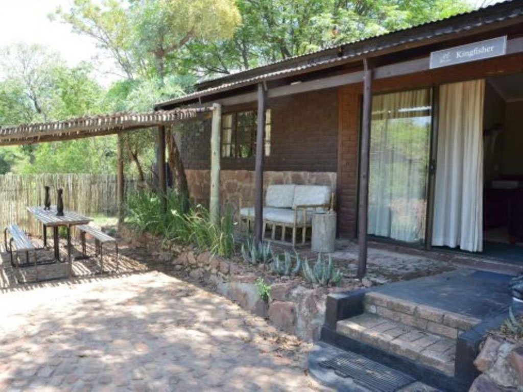 Kingfisher's natural exterior finish melts away in the bushveld surroundings, making you feel right at home in the Waterberg setting. The outside reed-covered patio with garden furniture is ideal for relaxing and looking at the activity in the dam below. With the barbeque at hand, this is a relaxing space to enjoy the serenity of the area around the barbeque fire. Wooden screening offers additional privacy.