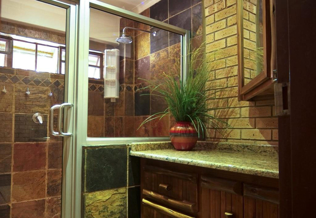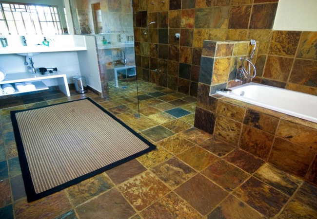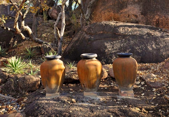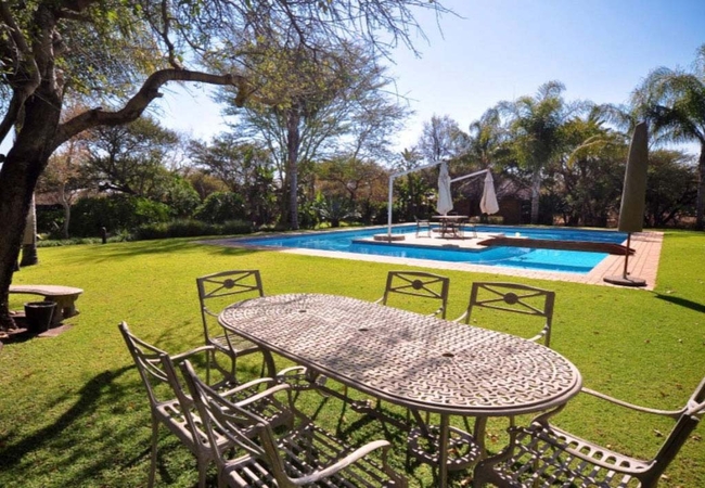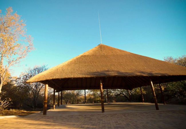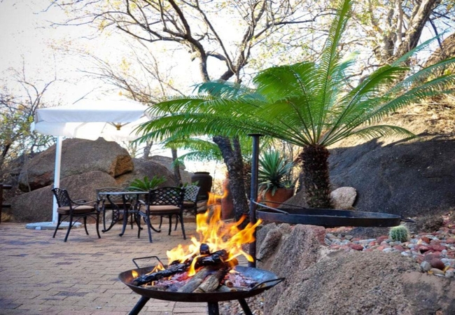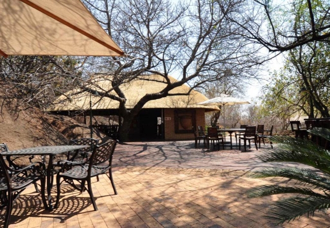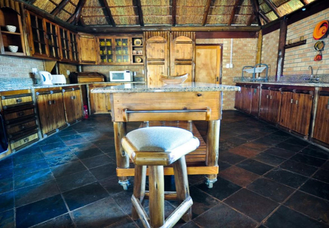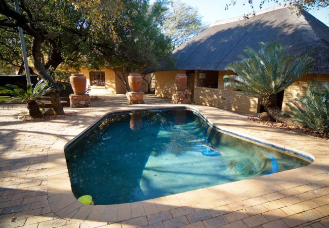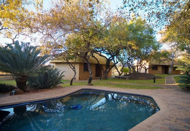 The Luxury Main Camp rooms are air-conditioned. There are two rooms furnished with double beds and they have en-suite bathrooms fitted with a shower, toilet and basin. There are four rooms furnished with three-quarter beds that share a bathroom fitted with a bath, shower, toilet and basin. The kitchen has a stove and the lounge has comfortable seating. Pathways lead through the trees and granite boulders to the lapa, braai and pool.