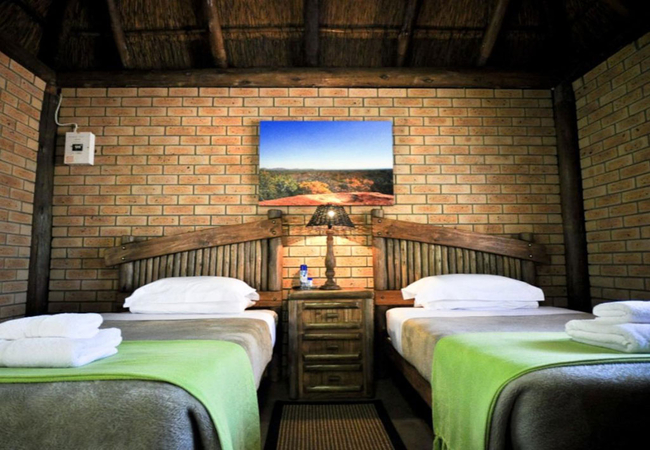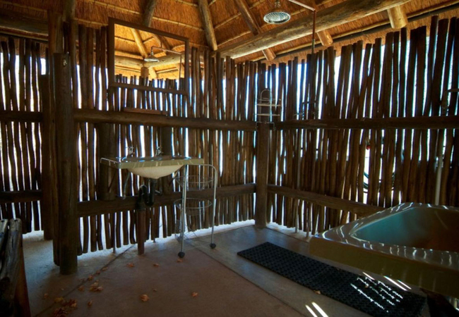 This Camp has three wooden bungalows furnished with two single beds and have a fan, insect repellents, bath and swimming towels. The shared kitchen is fully equipped. All meals have to be cooked on the open fire. Tin mugs and plates are part of the necessary kitchen utensils as well as cast iron potjies, frying pan and grids. Guests have access to a lapa and an open-air communal bathroom The camp has access to the communal swimming pool.