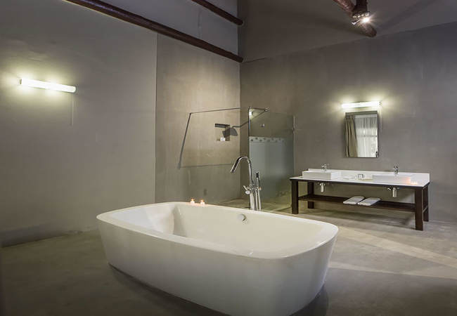 Skukuza is partly canvas with large sliding doors. The suite has a lounge and dining area with a fireplace. There are two min bedrooms with king-size beds and their own full en-suite bathroom. The suite has a private sundeck and plunge pool. Skukuza also has an aircon, DStv as well as a mini bar fridge.