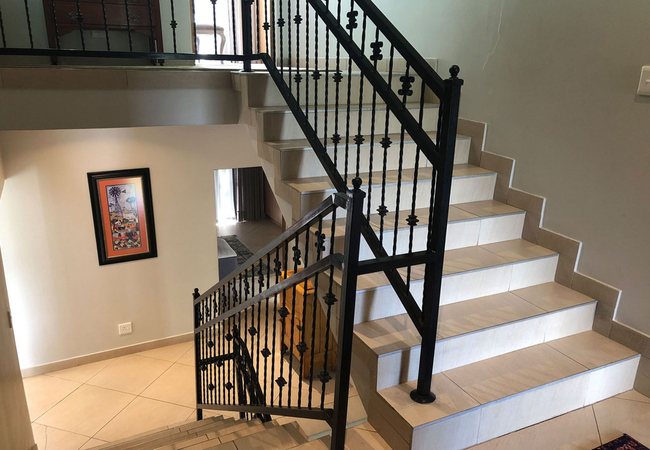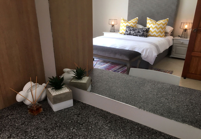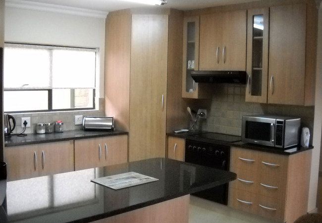 Montanus is an up-market home with all the essential elements for a comfortable stay. The house sleeps 8, in 4 beautifully appointed, spacious bedrooms, each on a different level. Three rooms have double beds and the fourth bedroom has twin beds. Each bedroom is en-suite, with both shower and bath. Large built in cupboards and a dressing table completes each room. All towels and linen are provided.